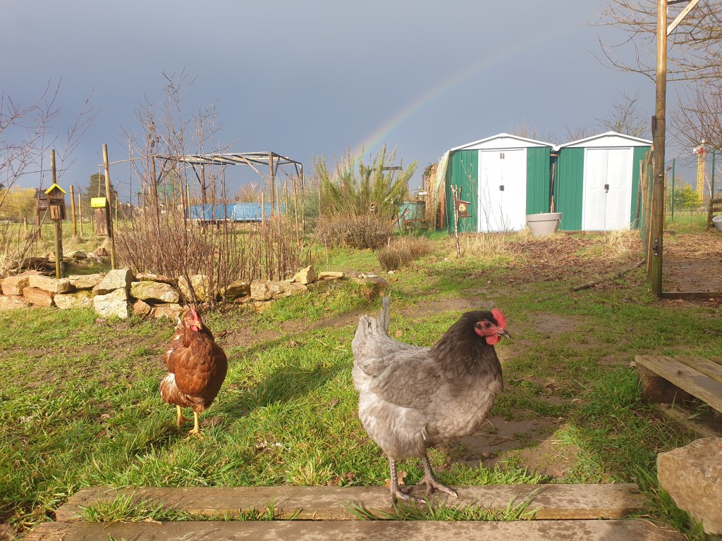- Les animaux domestiques : poules et moutons y sont présents pour une gestion écologique du site